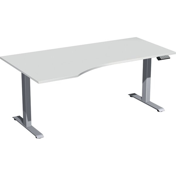 Geramöbel Sitz-Steh-Schreibtisch Elektro Elevate Basic, elektrisch höhenverstellbar, 73-123cm (H), 180x100cm (BxT), Freiform, lichtgrau / silber