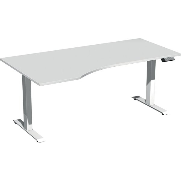 Geramöbel Sitz-Steh-Schreibtisch Elektro Elevate Basic, elektrisch höhenverstellbar, 73-123cm (H), 180x100cm (BxT), Freiform, lichtgrau / weiß