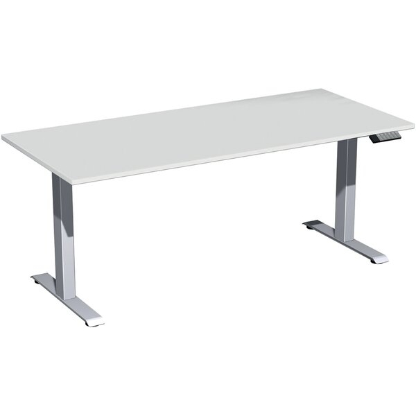Geramöbel Sitz-Steh-Schreibtisch Elektro Elevate Basic, elektrisch höhenverstellbar, 73-123cm (H), 180x80cm (BxT), rechteckig, lichtgrau / silber