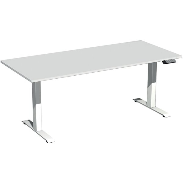 Sitz-Steh-Schreibtisch Elektro Elevate Basic, elektrisch höhenverstellbar, 73-123cm (H), 180x80cm (BxT), rechteckig, lichtgrau / weiß