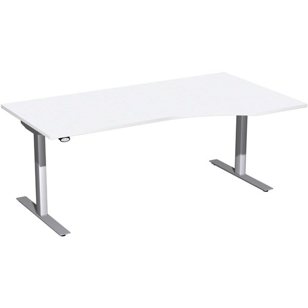 Geramöbel Sitz-Steh-Schreibtisch Elektro Flex, elektrisch höhenverstellbar, 65-125cm (H), 216,6x113cm (BxT), Freiform, weiß / silber