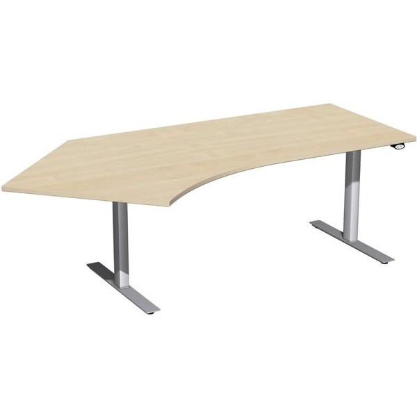 Geramöbel Sitz-Steh-Schreibtisch Elektro Flex, elektrisch höhenverstellbar, 65-125cm (H), 216,6x113cm (BxT), Freiform, ahorn / silber