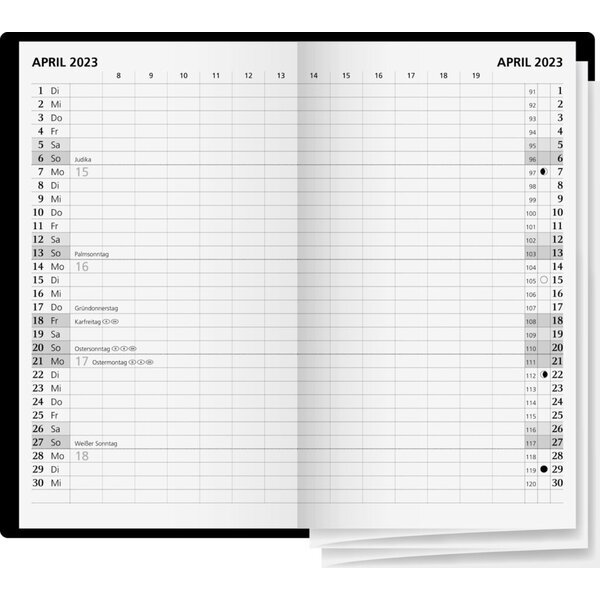 | 1 Monat / 2 Seiten 1 Monat / 2 Seiten in Buchkalender anzeigen | |