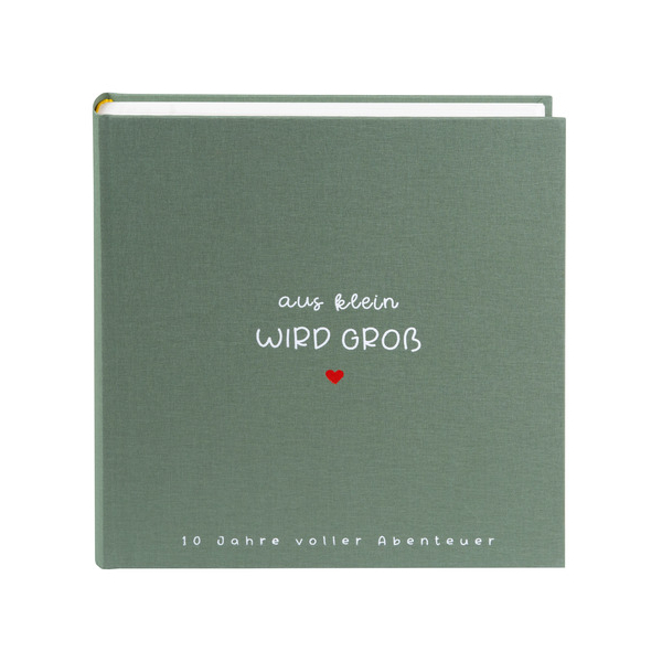 Der Leineneinband mit Weißprägung verleiht dem Album eine hochwertige Optik und Haptik, während das Motiv „aus klein wird groß“ die Reise des Heranwachsens wunderschön unterstreicht.
