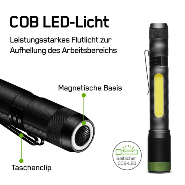 mit Clip und Magnet am Ende der Leuchte