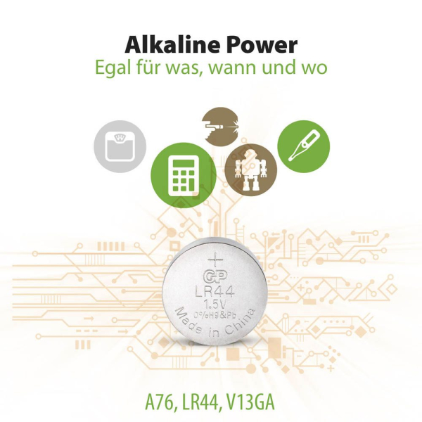 Entdecken Sie die leistungsstarken Knopfzellen von GP, speziell die V 13 GA/LR44, die in vielen Alltagsgeräten eine zuverlässige Energiequelle darstellen. Diese Knopfzellen sind ideal für Uhren, Taschenrechner, Spielzeuge und andere Geräte, die eine kompakte, aber leistungsstarke Batterie benötigen.