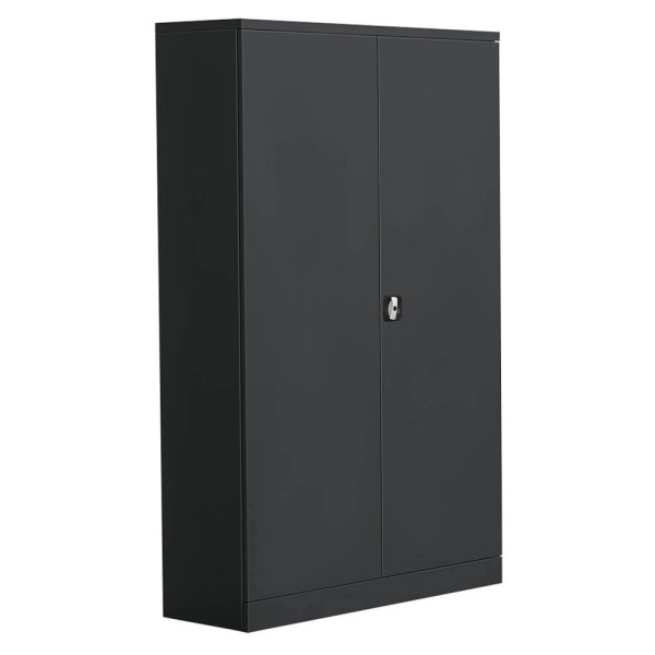 120 cm breit, 195 cm hoch, 42 cm tief, mit verschweißtem Stahlkorpus und verstärkten Türen