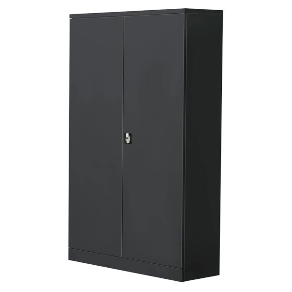 4 Fachböden höhenverstellbar, je 60 kg Tragkraft/Fachboden, 2 Flügeltüren abschließbar, Drehgriff, Sichtrückwand, verschweißter Korpus