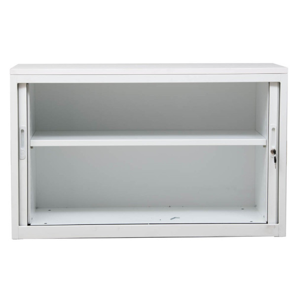 1 Fachboden höhenverstellbar, 2 Rolltüren, Sockelfüße verstellbar, Muldengriff