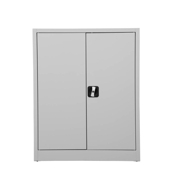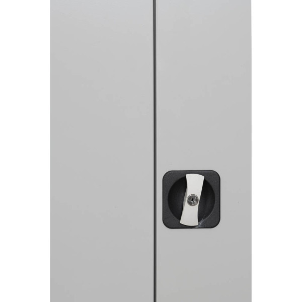1 Fachboden höhenverstellbar, je 50 kg Tragkraft/Fachboden, 2 Flügeltüren abschließbar, Drehgriff, Sichtrückwand