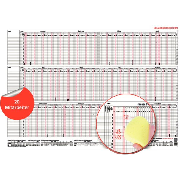 Güss Urlaubsplaner 12-20, 12 Monate / 1 Seite, 600x420mm, 2023*, für 20 Mitarbeiter | Güss Urlaubsplaner 12-40MB, 12 Monate / 1 Seite, 98,5x60cm, für 30 Mitarbeiter, 2026 | Güss Urlaubsplaner 1240, 12 Monate / 1 Seite, 985x600mm (HxB) (98,5x60cm), 2023*, für 30 Mitarbeiter, 2026 | Güss Urlaubsplaner 12-4, 12 Monate / 1 Seite, 110x84cm(BxH), 2026 | Güss Urlaubsplaner 12-55B, 974x310mm (HxB), 2026*, für 25 Mitarbeiter | Güss Urlaubsplaner 12-22, 1 Jahr / 1 Seite, 230x30cm, für 35 Mitarbeiter, 2026 | Güss Urlaubsplaner 12-54, 15 Monate / 1 Seite, 46x30cm, für 15 Mitarbeiter, 2026 | Güss Urlaubsplaner 12-54MB, 15 Monate / Januar bis März (Folgejahr), 441x297mm (HxB), 2023, für 15 Mitarbeiter, 2026 | Güss Urlaubsplaner 12-30MB, 15 Monate / Januar bis März (Folgejahr), 985x600mm (HxB), 2023, für 40 Mitarbeiter, 2026 | Brunnen Urlaubsplaner 1070135005, 12 Monate / 1 Seite, 138x30cm, für 25 Mitarbeiter, 2026 |