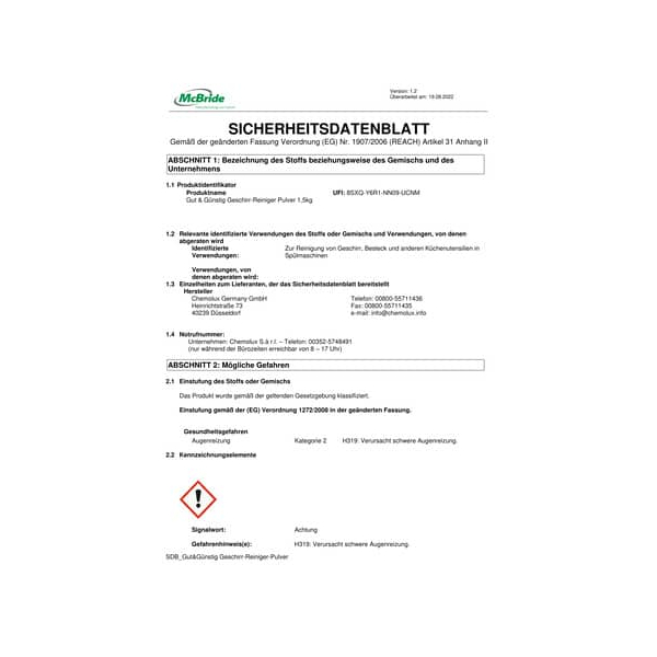 EUH208: Enthält SUBTILISIN. Kann allergische Reaktionen hervorrufen.
