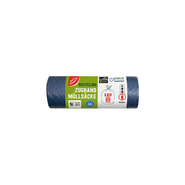 Gut und Günstig Müllbeutel 1463045003 Recycling, blau, 120 Liter, mit Zugband