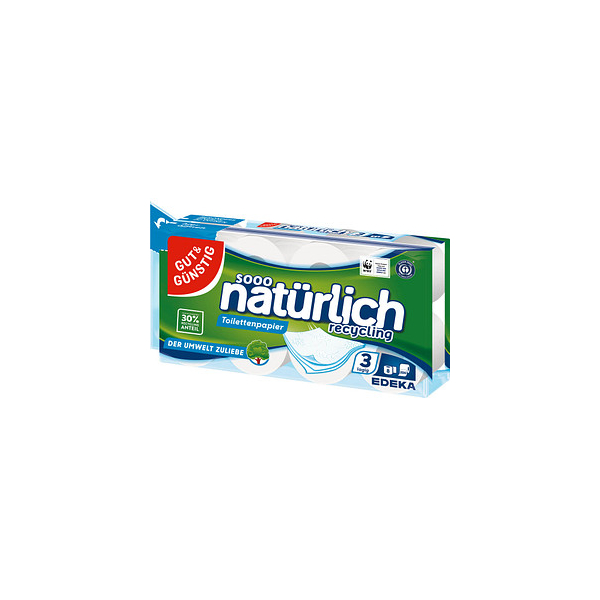 Gut und Günstig Toilettenpapier natürlich recycling 538517003, 3-lagig, weiß, 200 Blatt / Rolle,