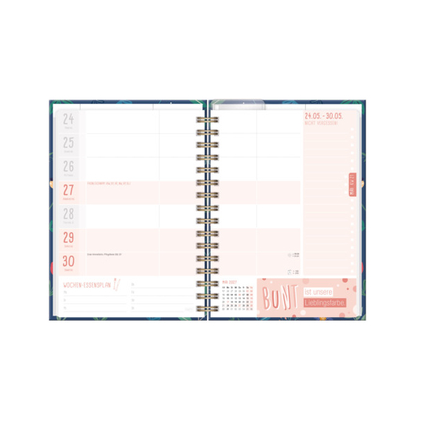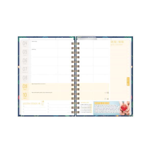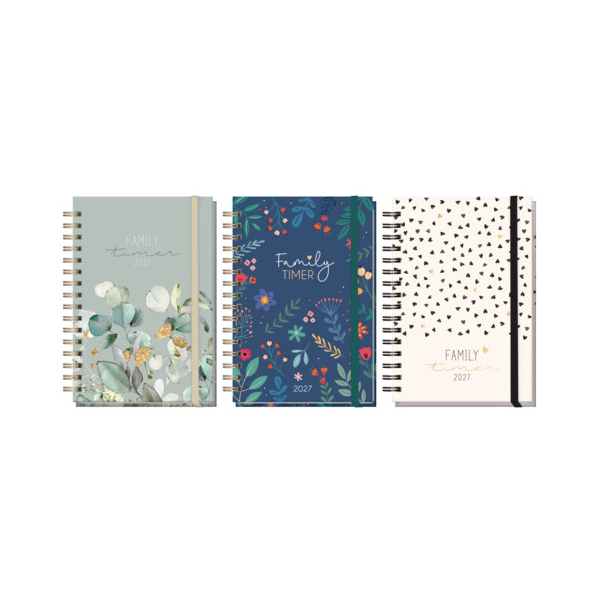 Der praktische Familienkalender „Family Timer“ 2027 bietet Platz zur Planung für bis zu vier Familienmitglieder. Auf jeweils einer Doppelseite ist eine Woche übersichtlich mit vertikalen Spalten dargestellt. Die Laufzeit umfasst Januar bis Dezember 2027. Zahlreiche Extras wie Wochen-To-do-Listen, Monatsvorschauseiten, Haushalts- und Urlaubsplanung, kreative Ausflugs- und Beschäftigungsideen sowie humorvolle Sprüche und hilfreiche Infos rund ums Familienleben machen die Organisation besonders leicht. Mit teilverdeckter Wire-O-Bindung, Leporello, Lesezeichen und Einstecktasche ist der Kalender im handlichen A5+-Format nicht nur funktional, sondern auch hochwertig ausgestattet – sortiert in verschiedenen Designs.