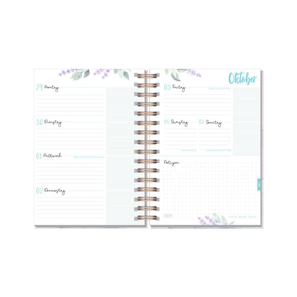 Planen Sie Ihr Schuljahr stilvoll mit dem liebevoll illustrierten Schülerkalender von Häfft! Mit einer Laufzeit von 14 Monaten, von August 2025 bis September 2026, bietet dieser Kalender eine übersichtliche Doppelseite für jede Woche von Montag bis Sonntag. Die 224 Seiten sind mit zauberhaften Aquarellzeichnungen gestaltet und laden zur individuellen Entfaltung ein. Nutzen Sie den großzügigen Platz für persönliche Notizen, kreative Ideen und inspirierende Sprüche. Im handlichen A5-Format und mit einer robusten Wire-O-Bindung ausgestattet, lässt sich der Kalender bequem öffnen und umblättern. Das veredelte Cover verleiht dem Kalender eine elegante Note, während ein praktisches Gummiband dafür sorgt, dass alles sicher an Ort und Stelle bleibt.