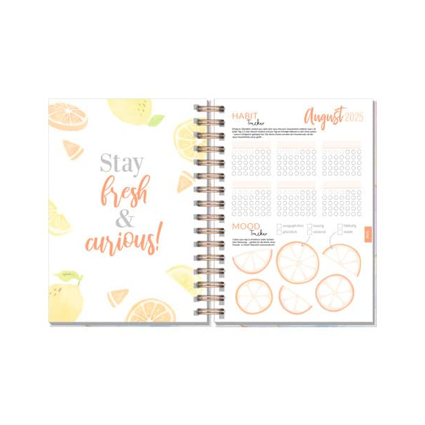 Planen Sie Ihr Schuljahr stilvoll mit dem liebevoll illustrierten Schülerkalender 9742-3 von Häfft! Mit einer Laufzeit von 14 Monaten, von August 2025 bis September 2026, bietet dieser Kalender eine übersichtliche Doppelseite für jede Woche von Montag bis Sonntag. Die 224 Seiten sind mit zauberhaften Aquarellzeichnungen gestaltet und laden zur individuellen Entfaltung ein. Nutzen Sie den großzügigen Platz für persönliche Notizen, kreative Ideen und inspirierende Sprüche. Im handlichen A5-Format und mit einer robusten Wire-O-Bindung ausgestattet, lässt sich der Kalender bequem öffnen und umblättern. Das veredelte Cover verleiht dem Kalender eine elegante Note, während ein praktisches Gummiband dafür sorgt, dass alles sicher an Ort und Stelle bleibt.