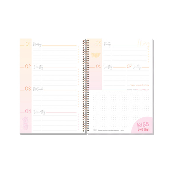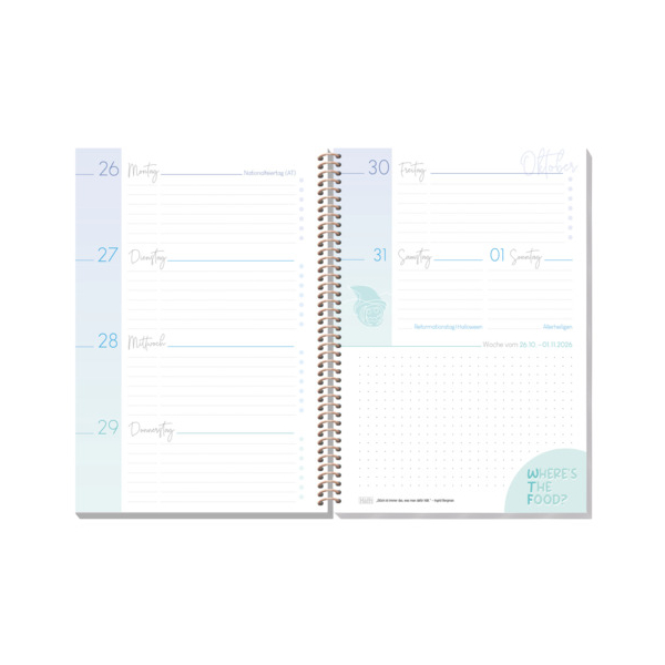 Der Schülerkalender College-Timer 2026/27 im A5-Format ist ein praktischer Wochenkalender für das Schuljahr von August 2026 bis Juli 2027. Jede Doppelseite zeigt eine Woche übersichtlich und bietet viel Platz für Termine, Hausaufgaben und Notizen. Mit 176 Seiten, stabiler Spiralbindung, mattfoliertem Cover und edler Folienveredelung liegt der Kalender beim Schreiben perfekt flach auf. Durchgehend in zarten Pastelltönen gestaltet und inklusive Stickerbogen, sorgt er für zusätzliche Motivation und Spaß beim Planen. Zahlreiche hilfreiche Extras unterstützen eine strukturierte Organisation des Schulalltags.