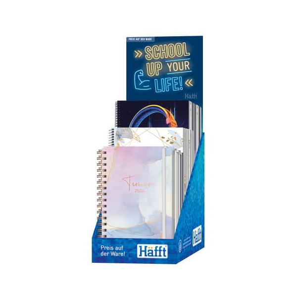 Entdecken Sie den neuen Schülerkalender sma25 s6spi für das Jahr 2025, der von dem renommierten Hersteller Häfft kreiert wurde. Dieses attraktiv zusammengestellte Display enthält 18 hochwertige Schülerkalender für das Schuljahr 2025/26, die in drei beliebten Varianten angeboten werden. Jeder Kalender ist 6-fach sortiert, sodass für jeden Geschmack etwas dabei ist: 6x Häfft-Timer 25/26 Fancy (Art.-Nr. 9742-3 / EAN 4029357097422), 6x Häfft College-Timer 25/26 (Art.-Nr. 9736-8 / EAN 4029357097361) und 6x Schulstuff Schüler-Timer A5 25/26 (Art.-Nr. 9794-4 / EAN 4029357097941).