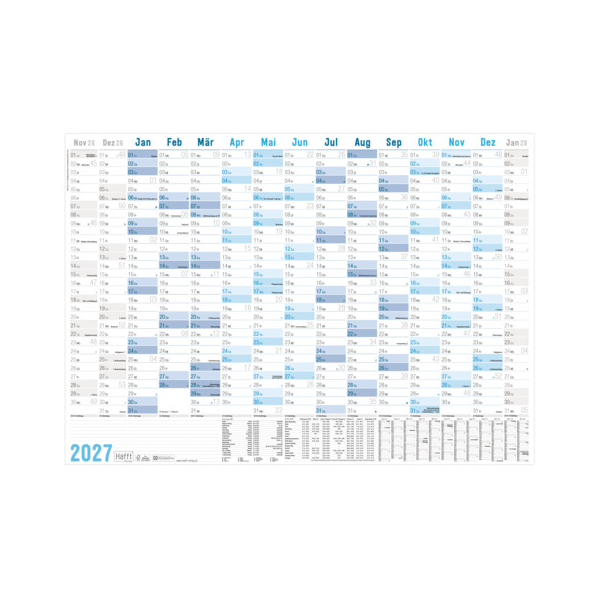 Wandkalender größer als A1, Querformat 89x63 cm, Laufzeit 15 Monate, November 2026 bis Januar 2028, mit Bleistift beschreibbar, Monats- & Jahresübersicht, Ferientermine und Feiertage - mit zusätzlichem handlichen A4-Kalender, im wiederverschließbaren Klappenbeutel mit Eurolochung, 140g/m² Papier