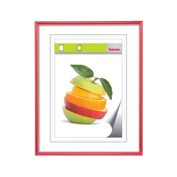Kunststoffrahmen Hama Sevilla ist passend für das Bildformat 20 x 28 cm und wird mit einem Passepartout-Einleger und Einleger für Digitalformat geliefert. Die Farbe des Rahmens ist Rot und die Leistenbreite beträgt 9 mm, die Leistenhöhe 17 mm. Das Qualitätsglas ist vom Typ Reflex.