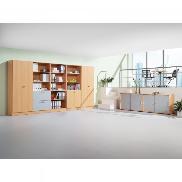 4 Fachböden höhenverstellbar, 25kg Tragkraft/Fachboden, 2 Flügeltüren abschließbar, Sockelfüße höhenverstellbar,Knopfgriff, teilzerlegt