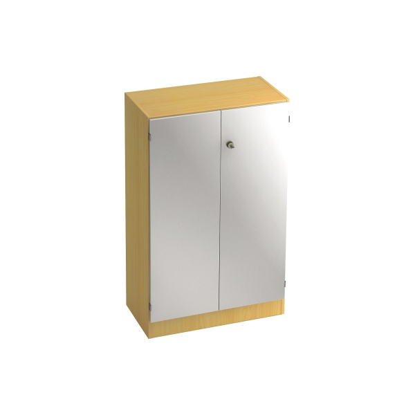 • Frontfarbe: silber • Korpusfarbe: buche • Material: 3-Schicht Spanplatten, melaminharzbeschichtet • Flügeltüren • abschließbar (Zylinderschloss)