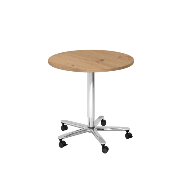 Hammerbacher Besprechungstisch VST, sufenlos über Gasdruckfeder höhenverstellbar 72-114cm (H), 80x80cm (BxT), rund, asteiche / chrom