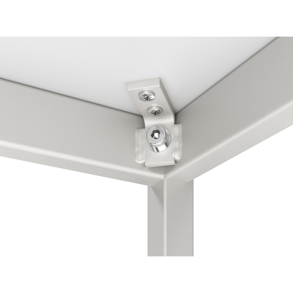 Dieser Schreibtisch hat eine rechteckige Form mit einer Fläche von 80 x 80 cm und bietet Ihnen ausreichend Platz für Ihre Arbeitsmaterialien. Die Tischplatte ist 19 mm dick und mit einer ABS-Kante versehen, die für eine hohe Langlebigkeit sorgt. Das robuste vier Fuß Gestell aus quadratischem Stahlrohr garantiert eine stabile Standfestigkeit.