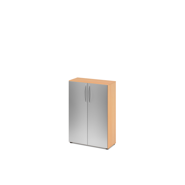 Der Schrank verfügt über einen Korpus in ansprechendem Buche-Design und eine Front in stilvollem Silber. Mit einem Maß von 80 x 34,6 x 114,4 cm (BxTxH) bietet er ausreichend Platz für Ihre Unterlagen. Die Drehtüren, die einen Öffnungswinkel von 110° haben, ermöglichen einen bequemen Zugriff auf Ihre Inhalte. Beachten Sie bitte, dass der Schrank nicht abschließbar ist.
