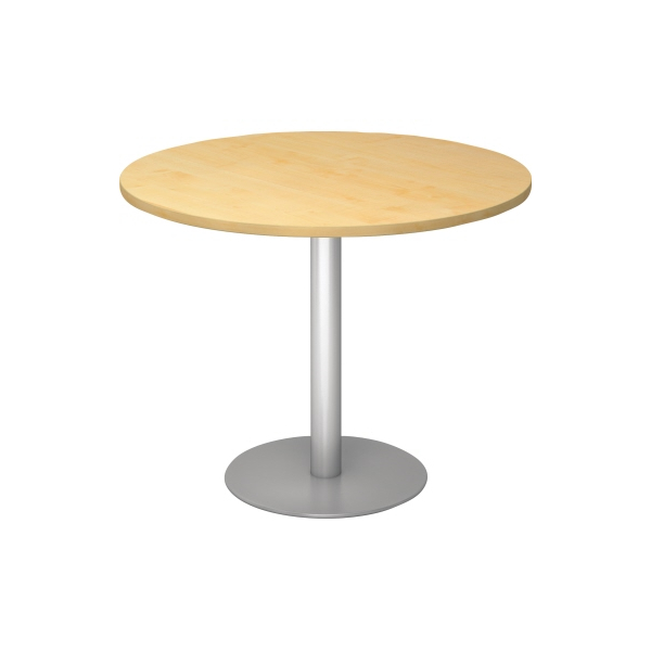 Hammerbacher Konferenztisch, 74,5cm (H), 100x100cm (BxT), rund, ahorn / silber