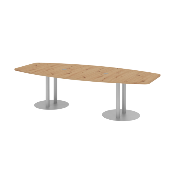 Hammerbacher Konferenztisch VKT, 75,5cm (H), 280x85-130cm (BxT), 10 Personen, Tonnenform, asteiche / silber