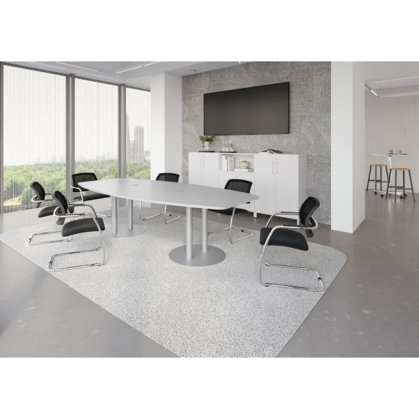 Hammerbacher Konferenztisch VKT, 75,5cm (H), 280x85-130cm (BxT), 10 Personen, Tonnenform, grau / silber