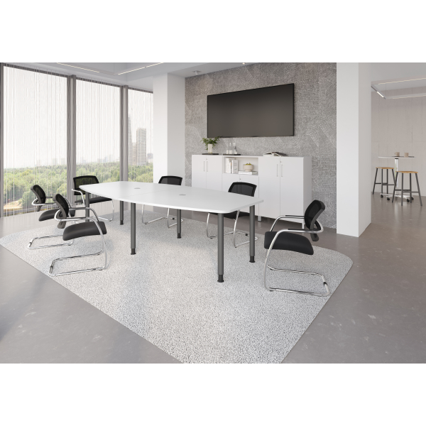 Der Konferenztisch wird zerlegt angeliefert, lässt sich jedoch dank der einfachen Montage problemlos zusammenbauen. Die Plattenstärke von 25 mm und die robuste ABS-Kante machen ihn widerstandsfähig und langlebig.
