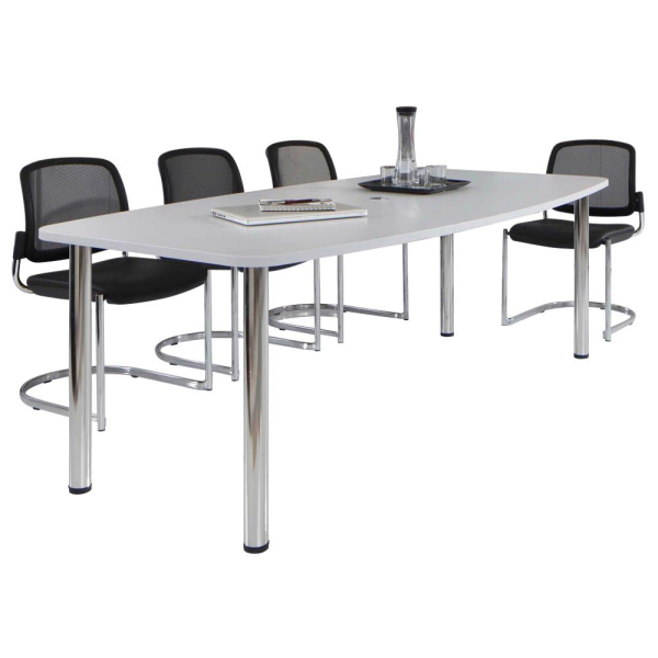 Das Vier-Fuß-Gestell aus verchromtem Stahl sorgt nicht nur für Stabilität, sondern auch für ein modernes Design. Der Tisch wird zerlegt geliefert, bietet jedoch eine einfache Montage, sodass Sie schnell mit Ihren Meetings beginnen können.