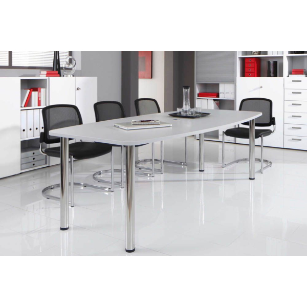 Konferenztisch VKT, manuell höhenverstellbar 72-74cm (H), 220cmx83-103cm (BxT), 8 Personen, Tonnenform, lichtgrau / chrom