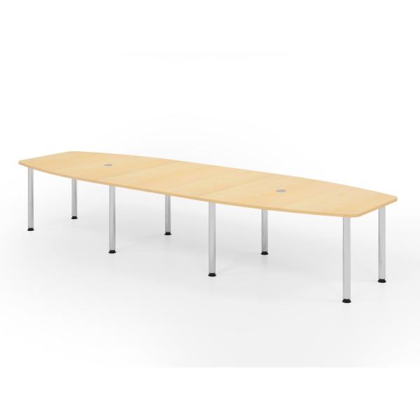 Hammerbacher Konferenztisch VKT, manuell höhenverstellbar 72-74cm (H), 400cmx85/130cm (BxT), 14 Personen, Tonnenform, ahorn / chrom