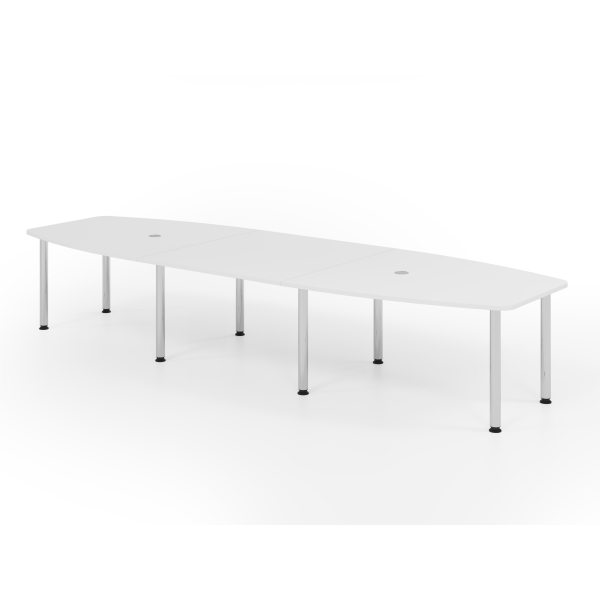 Konferenztisch VKT, manuell höhenverstellbar 72-74cm (H), 400cmx85/130cm (BxT), 14 Personen, Tonnenform, weiß / chrom