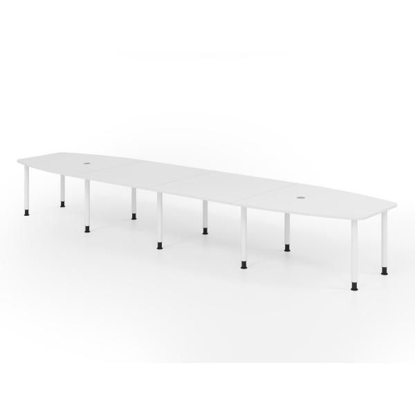 Hammerbacher Konferenztisch VKT, manuell höhenverstellbar 72-74cm (H), 520cmx85-130cm (BxT), 18 Personen, Tonnenform, weiß / graphit