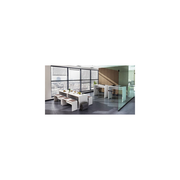 HEAD präsentiert Ihnen das Möbelset "Meet Me", bestehend aus einem Tisch und zwei Bänken. Dieses Sitz-Garnitur ist ideal für Bistros, Pausenräume und Kantinen. Die Sitzbänke passen perfekt unter den Tisch, wodurch Sie Platz sparen können.