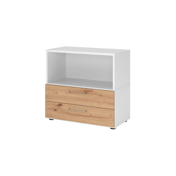 1 Fachboden nicht höhenverstellbar, 28kg Tragkraft/Fachboden,1 Regalfach, 2 Schubladen mit Soft-Stopp, Teilauszug 80%, Sockelfüße verstellbar, Bügelgriff, zerlegt, werkzeuglose Korpusmontage und einfache Demontage durch Klicksystem