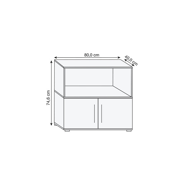 • Schrankmaße: 80x74,6x40cm (BxHxT) • Ordner-Etagen: 2 Ordnerhöhen • Gewicht: 26,4kg