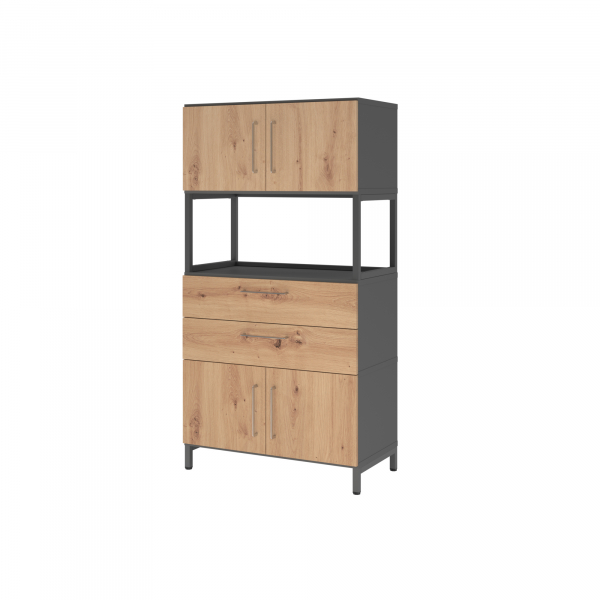 • Ausführung: 1 Regalfach mit offenem Rahmenelement aus Stahl, 2 Fächer mit je 2 Flügeltüren, 2 Schubladen mit Soft-Stopp, Teilauszug 80%