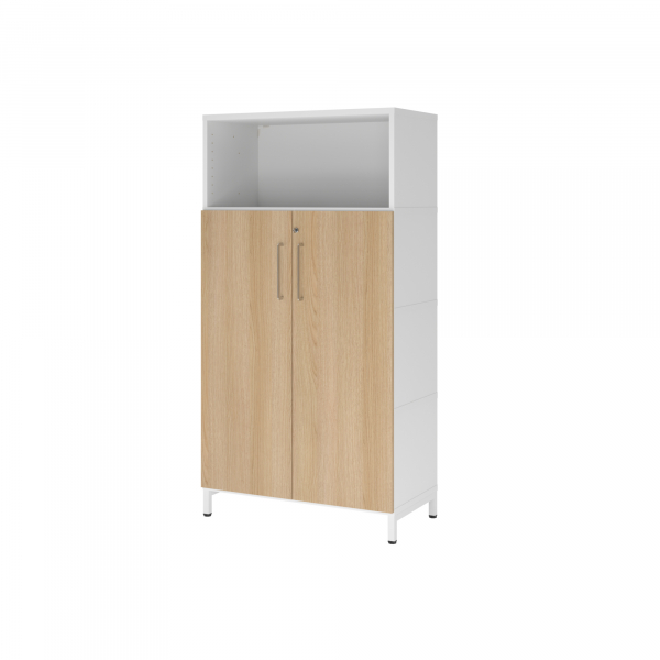 3 Fachböden nicht höhenverstellbar, 28kg Tragkraft/Fachboden, 1 Regalteil, 2 Flügeltüren abschließbar, erhöhte Sockelfüße verstellbar, Bügelgriff, zerlegt, werkzeuglose Korpusmontage und einfache Demontage durch Klicksystem