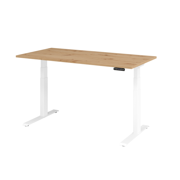 Hammerbacher Schreibtisch Basic, elektrisch höhenverstellbar, 64-129cm (H), 160x80cm (BxT), rechteckig, asteiche / weiß