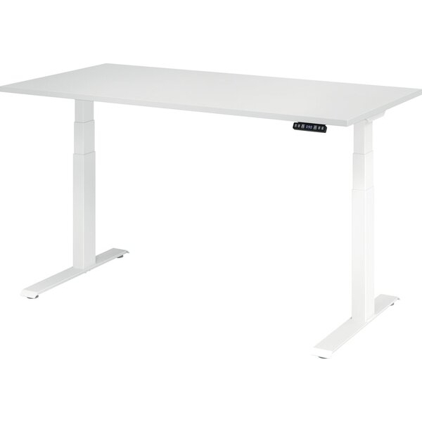 Hammerbacher Schreibtisch Basic, elektrisch höhenverstellbar, 64-129cm (H), 160x80cm (BxT), rechteckig, weiß / weiß