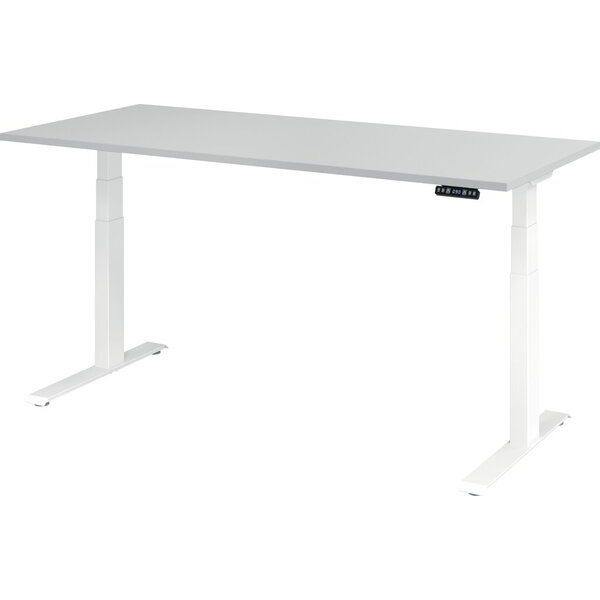 Hammerbacher Schreibtisch Basic, elektrisch höhenverstellbar, 64-129cm (H), 180x80cm (BxT), rechteckig, grau / weiß