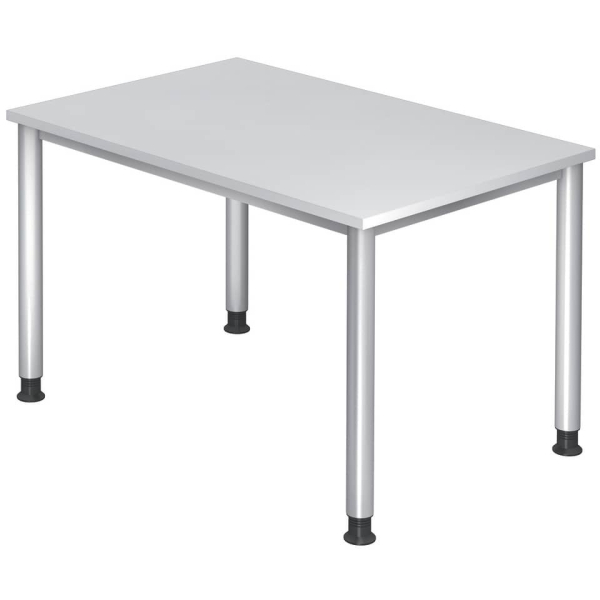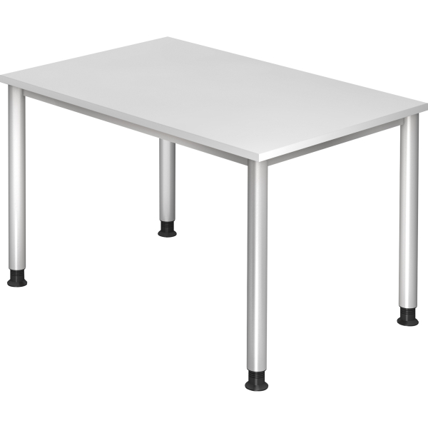 Hammerbacher Schreibtisch H-Serie, manuell höhenverstellbar, 68-76cm (H), 120x80cm (BxT), rechteckig, weiß / silber