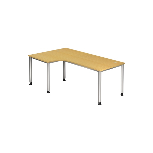 Jetzt Hammerbacher Schreibtisch H-Serie, manuell höhenverstellbar, 68-76cm (H), 200x120cm (BxT), L-Form, buche / silber günstig kaufen.