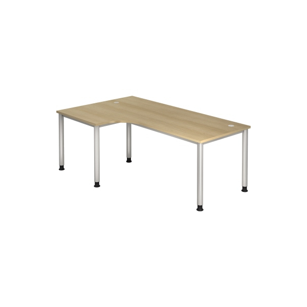 Hammerbacher Schreibtisch H-Serie, manuell höhenverstellbar, 68-76cm (H), 200x120cm (BxT), L-Form, eiche / silber